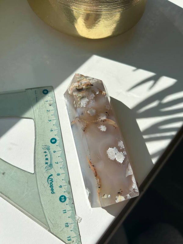 Het mineraal Agaat blauw geeft een hoge vibratie en leid je naar spiritueel inzicht. De edelsteen ruimt trauma's en blokkades op en polijst uw ziel. Blauwe Agaat werkt tevens goed tegen hoofdpijn en hersenfuncties en is heilzaam voor het hart en lever.