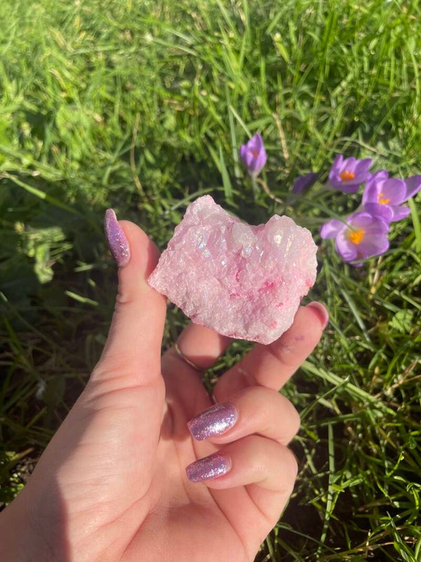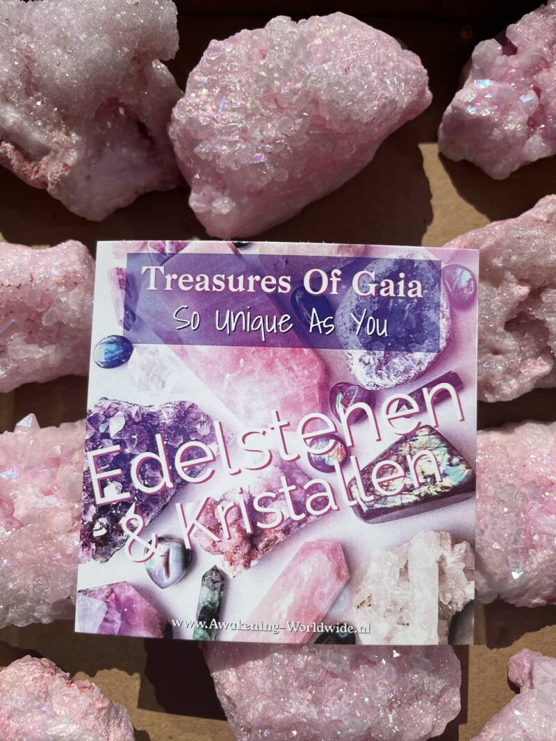 Roze Aura Kwarts lijkt erg op Cranberry Aura, maar is nog iets zachter van energie. Deze Aurakwartsen zijn heel erg bijzonder omdat deze wel 3 edelmetalen bevatten, een laagje zilver, platina en goud. Dit maakt de steen extra krachtig van energie. De zachte energie van Rose Aura geeft je energie maar niet op een overweldigende manier, maar op een hele liefdevolle, zachte manier die de pijnappelklier en het hart chakra stimuleert en helpt transformeren naar een hoger niveau. Rose Aura is een steen voor liefde die verbonden is met het hartchakra en met de energie van liefde en met de Roze Straal die weer verbonden is met de Godinnen energie en die van Isis, Quan Yin en Maria Magdalena. Het is een zeer beschermende aurakwarts, vooral in onrustige tijden en bij agressie. Rosse Aura is heel goed voor jonge vrouwen, vooral die last hebben van een negatief zelfbeeld en moeite met hun lichaam hebben of die met een vorm van misbruik te maken hebben gehad of afgewezen zijn in de liefde. Het kristal zorgt voor een krachtige verbinding met onvoorwaardelijke liefde voor jezelf. Heel goed voor in de pubertijd en ondersteunt meisjes die vroeg menstrueren en hier problemen mee hebben. Het kristal brengt zachtheid en liefde in je leven, ook helpt het om je innerlijk Kind te helen. De steen kan helpen bij het losmaken van entiteiten en geblokkeerde energieën en helpt bij het dichten van gaten in de aura en lekkende chakra’s. Hij geeft het lichaam en de aura energie en heling op alle vlakken.